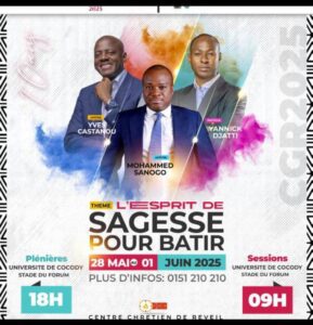 lPlacé sous le thème inspiré « L’Esprit de Sagesse pour Bâtir », ce rassemblement spirituel réunira des milliers de fidèles autour de figures majeures du christianisme francophone telles que l’Apôtre Mohammed Sanogo, l’Apôtre Yves Castanou et le Pasteur Yannick Djatti, hôte principal de la conférence.